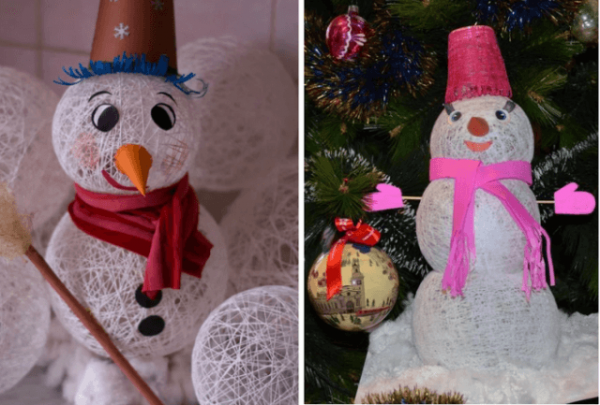 Изготовление снеговика из ниток и клея своими руками пошагово:
