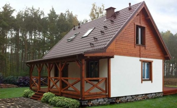 Проект маленького дачного дома с верандой под общей крышей