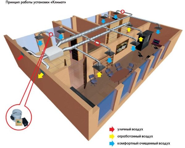 По помещениям он распространяется, благодаря вентиляционным каналам.