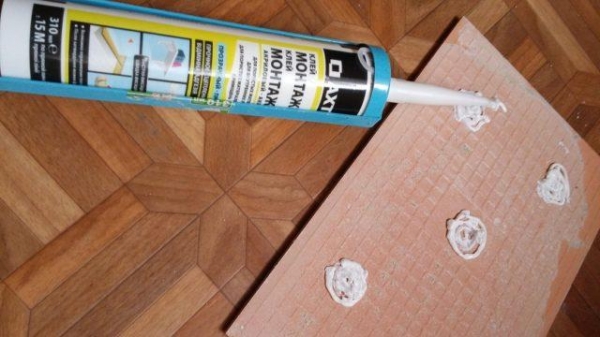 Приклеивание плитки с использованием жидких гвоздей происходит так: