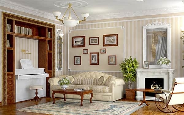 Классический стиль. Классика, включает в себя отделку из дерева, мебель с обивкой натуральных материалов, а также большей частью белые и бежевые оттенки цветовой гаммы.