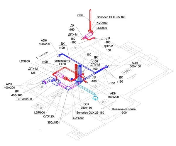 Подробная схема системы вентиляции (в том числе и аксонометрическая) необходима для согласования проекта строящегося частного дома в контролирующих и надзирающих инстанциях.