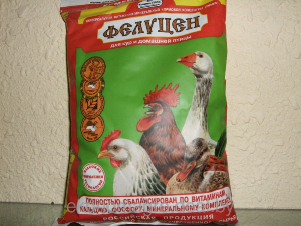 Фелуцен содержит 14 витаминов, аминокислоты (лизин и метионин), макро-(фосфор, кальций, сера, натрий) и микроэлементы (железо, медь, селен, цинк, йод, марганец).