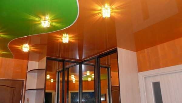 Глянцевые потолки делают помещение на вид более просторным, так что если вам нужно зрительно увеличить комнату — это ваш выбор. Теплые оттенки сделают потолок визуально ниже, что хорошо в небольших гостиных, а холодные — выше.