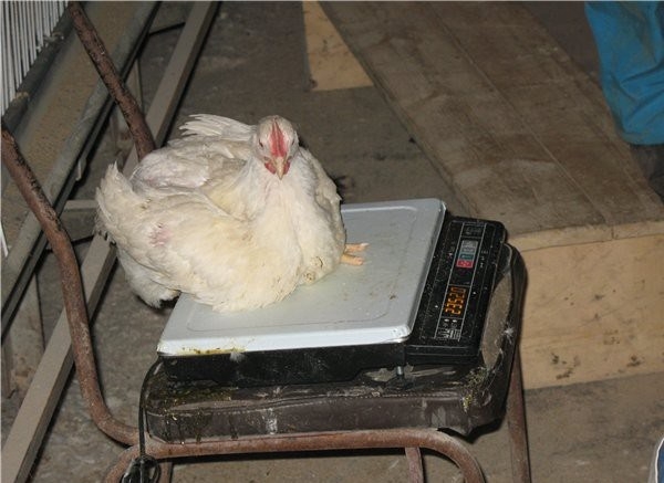 Для взвешивания маленьких курочек можно использовать электронные взвешивающие приборы как с чашей, так и без нее, механические пружинные весы и безмен. Для того чтобы взвесить бройлера с помощью пружинных весов или безмена можно использовать обыкновенную хозяйственную сумку, но птица будет вырываться и точность взвешивания может пострадать. Можно в этой же сумке проделать два отверстия, куда будут просовываться лапы курочки, таким образом она зафиксируется и будет спокойно висеть. Для взвешивания цыплят можно пошить небольшой марлевый мешок с плотным дном и ручками. В него сажают птенца и поднимают безмен вверх.
