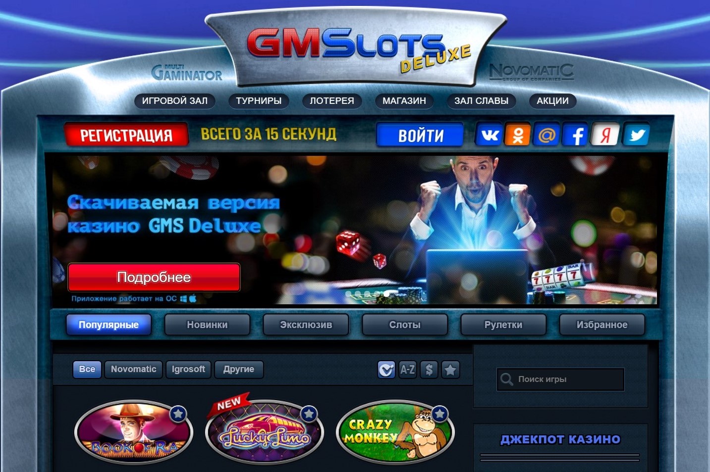 Казино GMSlots Deluxe ‒ это абсолютная безопасность, выигрышные лотереи, увлекательные турниры, круглосуточный доступ. Это клуб, способный удовлетворить запросы каждого геймера, и подарит отличный отдых любому желающему.