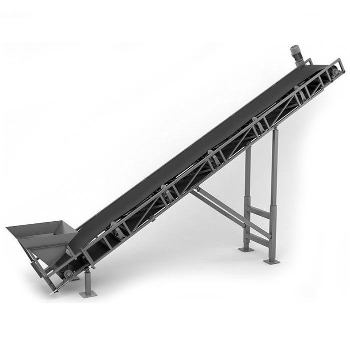 Ленточный наклонный конвейер состоит из горизонтальной или наклонной рамы, на которую укладывается лента. Лента представляет собой гибкий материал, который перемещает грузы от одного конца конвейера к другому под воздействием привода. Привод обеспечивает движение ленты, тем самым перемещая грузы.