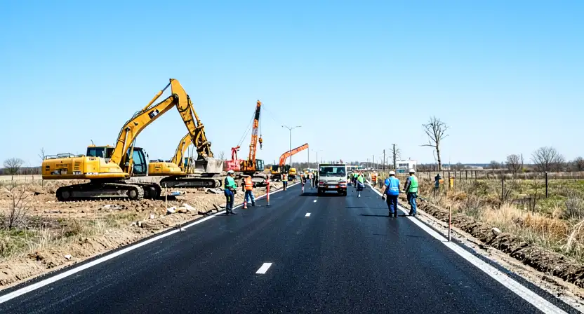 - Работы включают земляные работы, установку барьерного ограждения и нанесение разметки.