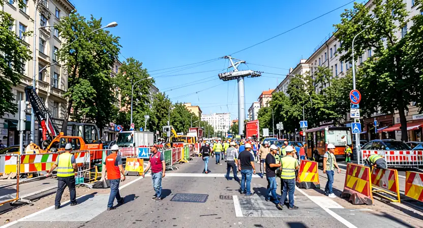 В период активной фазы строительства увеличивается количество техники и объем работ, однако организаторы гарантируют сохранение пешеходной доступности по всем участкам. Для этого предусмотрено устройство временных крытых галерей и настилов, которые позволят безопасно обходить строительные площадки.