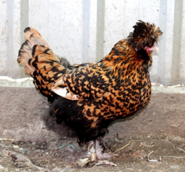 Узнать кур Павловской породы можно по горизонтальной поставе корпуса, напоминающему шлем хохолку, больших баках и бороде. Но главное их достоинство – ни с чем не сравнимое оперение, которые бывает двух разновидностей: золотисто-пятнистое и серебристо-пятнистое.