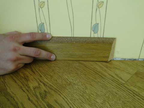 Установка деревянного напольного плинтуса начинается с выполнения замеров и подсчета необходимого количества планок. Лучше покупать изделия, выполненные из сухой древесины, поскольку влажный материал, плохо шлифуется, и поверхность планок получается неаккуратной с торчащими волокнами. Более того, со временем они начнут усыхать и деформироваться, что приведет к их искривлению. Так или иначе, привезенный из магазина материал необходимо обязательно продержать в течение суток в помещении, где их предполагается установить. Обычно этого времени бывает достаточно, чтобы планки привыкли к внутренней температуре и влажности в этом помещении.