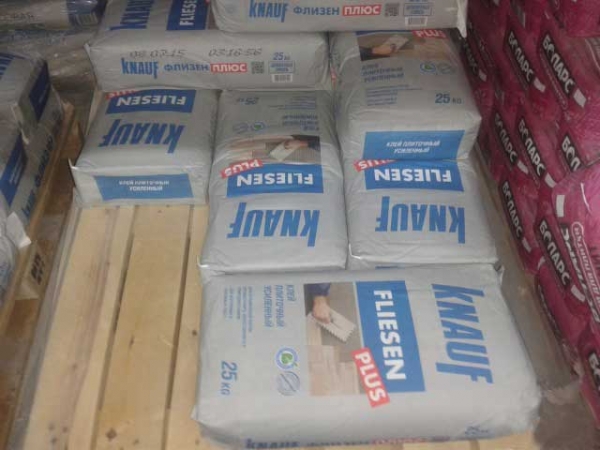 Основной компонент этой сухой смеси с минеральными добавками – цемент. Морозостойкий раствор подходит для облицовочных работ, внутренних и наружных. На плиточный клей Плюс укладывают плитку, керамогранит, натуральный или искусственный камень. Причем основанием может служить бетон, гипсокартон, ГВЛ, ЦПС и сухая стяжка Кнауф. Состав подходит для крепления низкопористых плит керамогранита