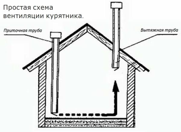 - Сухость. Высокая влажность, особенно при похолодании, способна привести к болезни кур. Для больших построек проблему можно решить, сделав небольшие зарешёченные окошки напротив основных. Возможна установка вентиляции в виде двух деревянных коробов на разных его концах. Ещё один вариант – две трубы, под крышей и на расстоянии 30-35 см от неё. И короба, и крыши должны иметь заслонки, позволяющие регулировать поток воздуха. Что собой представляет деревянный детский домик для дачи рассказано в этой статье.