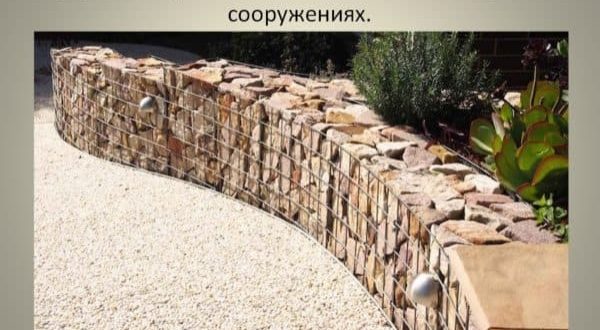 Для современного ландшафтного строительства часто применяют ограждения из камней, которые называют габионами. Эти конструкции легко сделать своими руками, если нужно возвести забор, защищающий участок от шума. Также при
